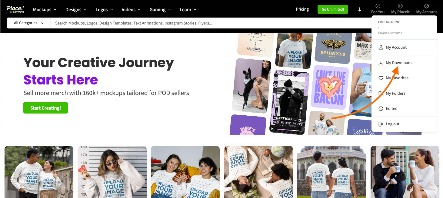 - Once your mockup is processed and ready, click ‘Click here to download ↓’.