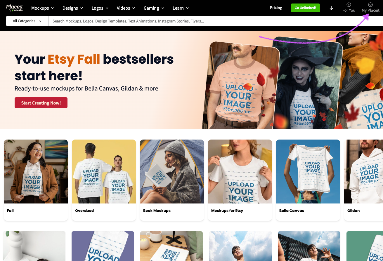 - Once you’re logged into Placeit, click on "My Placeit" next to your account name.